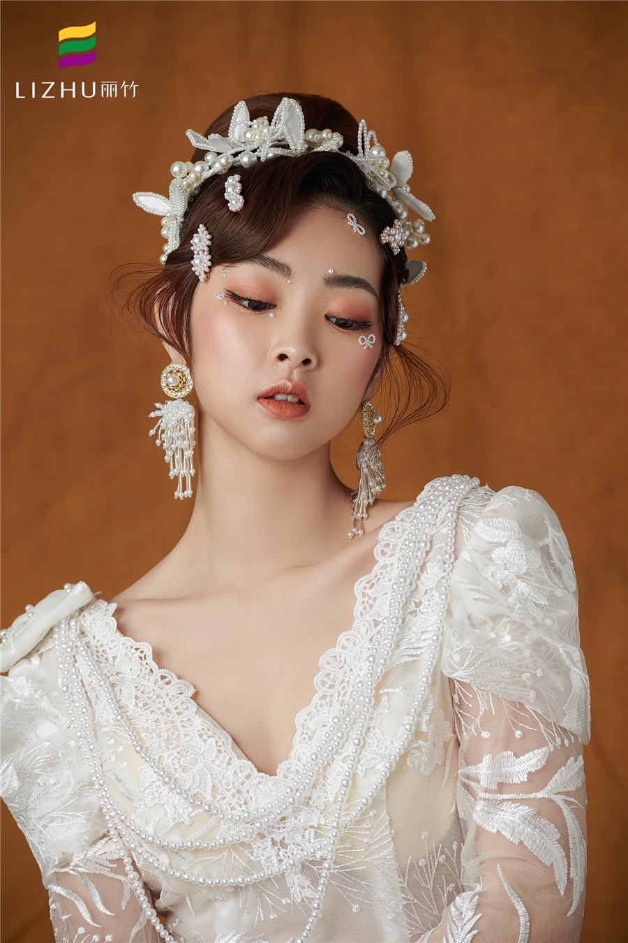 麗竹學(xué)校彩妝作品---輕奢復(fù)古珍珠妝容:復(fù)古簡潔優(yōu)雅的盤發(fā),佩戴少女俏皮的頭飾,純白珍珠搭配的精致,展示出萬種舊日風(fēng)情,使得微微一笑很傾城。