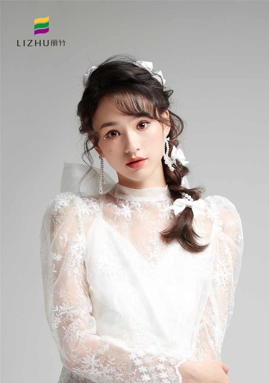 廣西化妝培訓(xùn)學(xué)校(麗竹化妝學(xué)校)---甜美時(shí)尚新娘造型:簡(jiǎn)約的便面編發(fā),搭配優(yōu)雅的白色蝴蝶結(jié)點(diǎn)綴。素雅動(dòng)人,甜美優(yōu)雅,無須濃墨重彩,即可打造氣質(zhì)恬靜新娘。