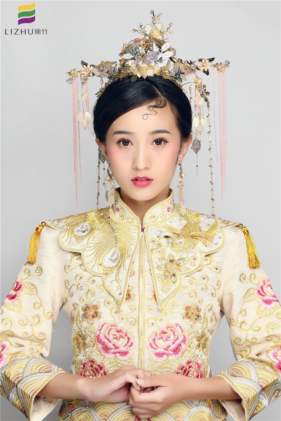南寧麗竹化妝學(xué)校作品---中式復(fù)古造型。婉約典雅,配上搖曳的鎏金頭飾,面上略施粉黛, 一抹朱唇紅艷,幾分婉約賢淑,幾分典雅大氣,精致的中式新娘造型!