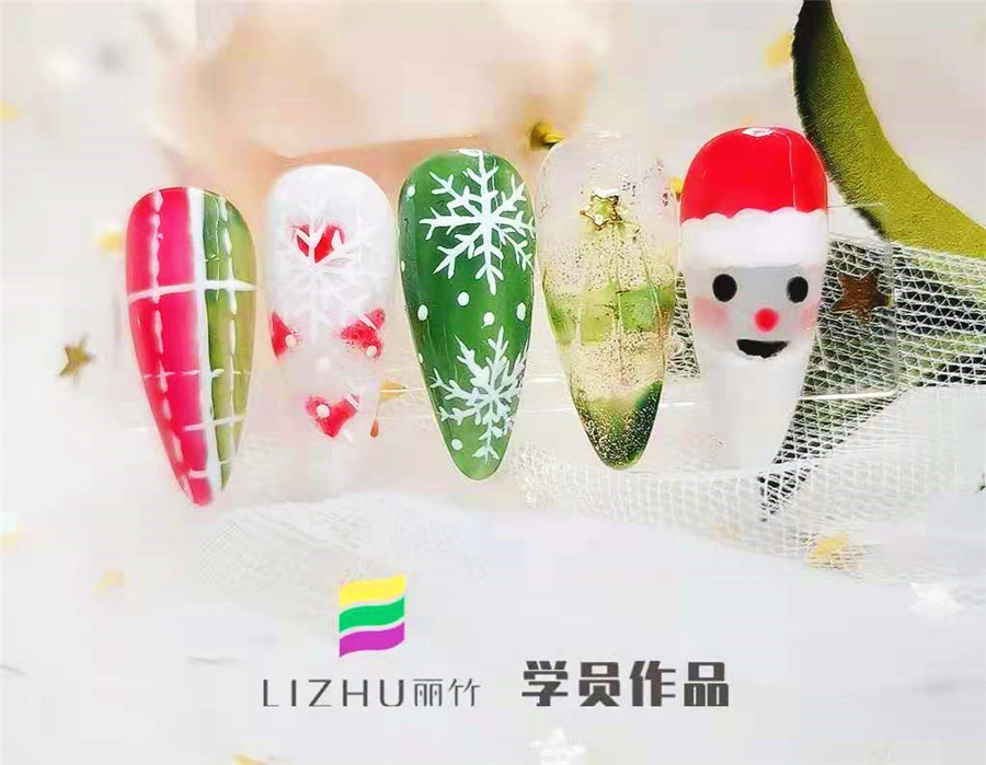 南寧美甲學(xué)校分享:綠色和紅色,雪花和襪子,老人和松樹……這些都是圣誕節(jié)到來的標志!為了將這些充滿圣誕元素的物件和人物放在指甲上,廣西正規(guī)美甲培訓(xùn)學(xué)校(麗竹美甲學(xué)校)的學(xué)員們繪制了一些列的美甲作品,現(xiàn)在就來看看有沒有你喜歡的美甲款式吧!