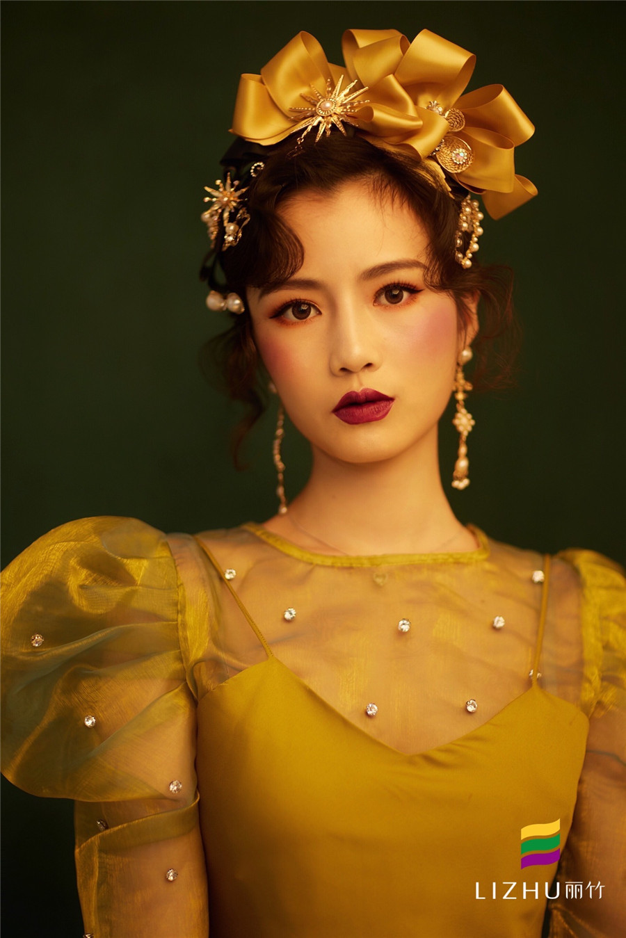 油畫妝容造型:復(fù)古手推波營(yíng)造的優(yōu)雅感,佩戴金光亮閃的珍珠頭飾,極具張力的色系妝容打造,營(yíng)造出了古典優(yōu)雅韻味,又不可抗拒的文藝氣息,如油畫里走出來(lái)的女王。