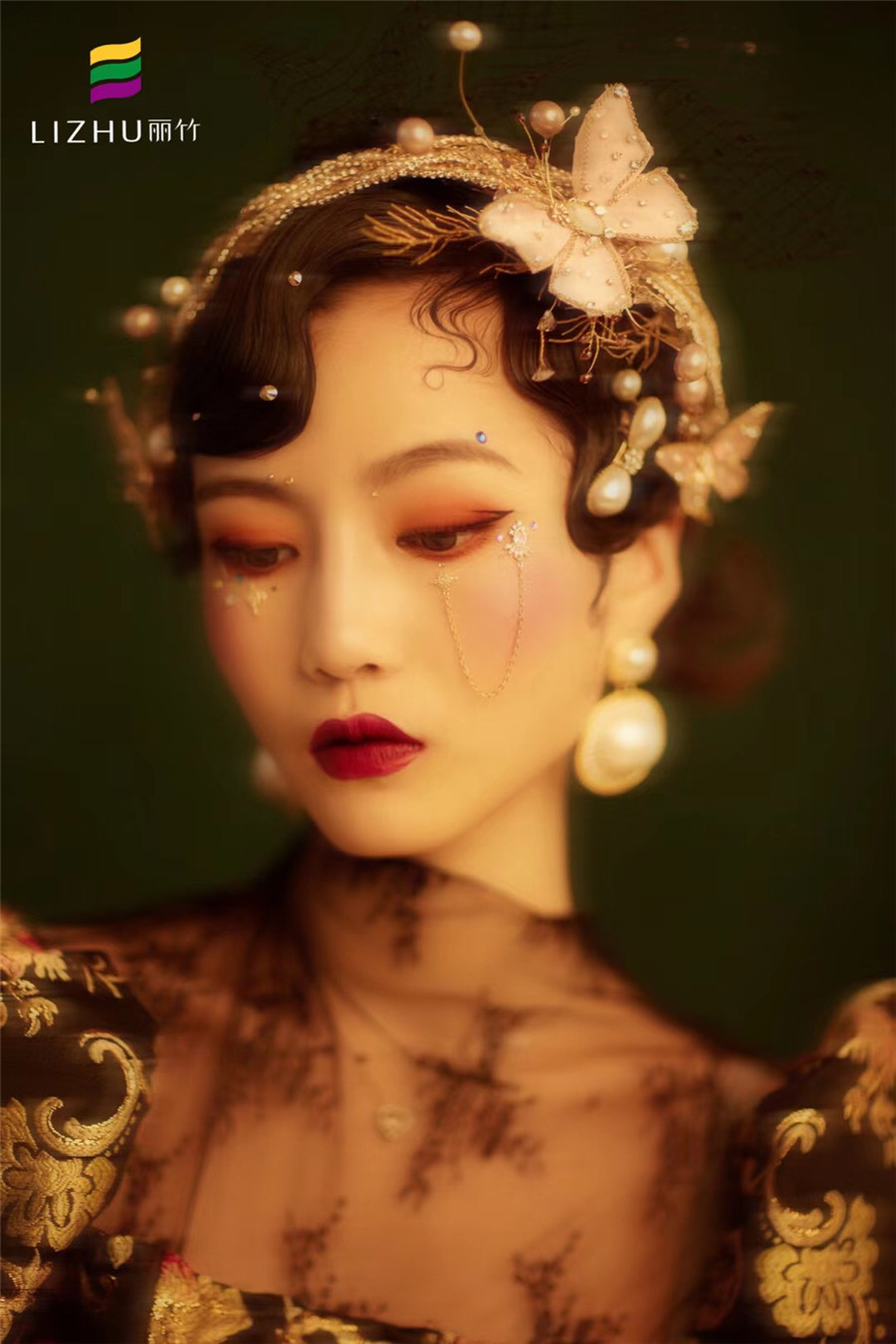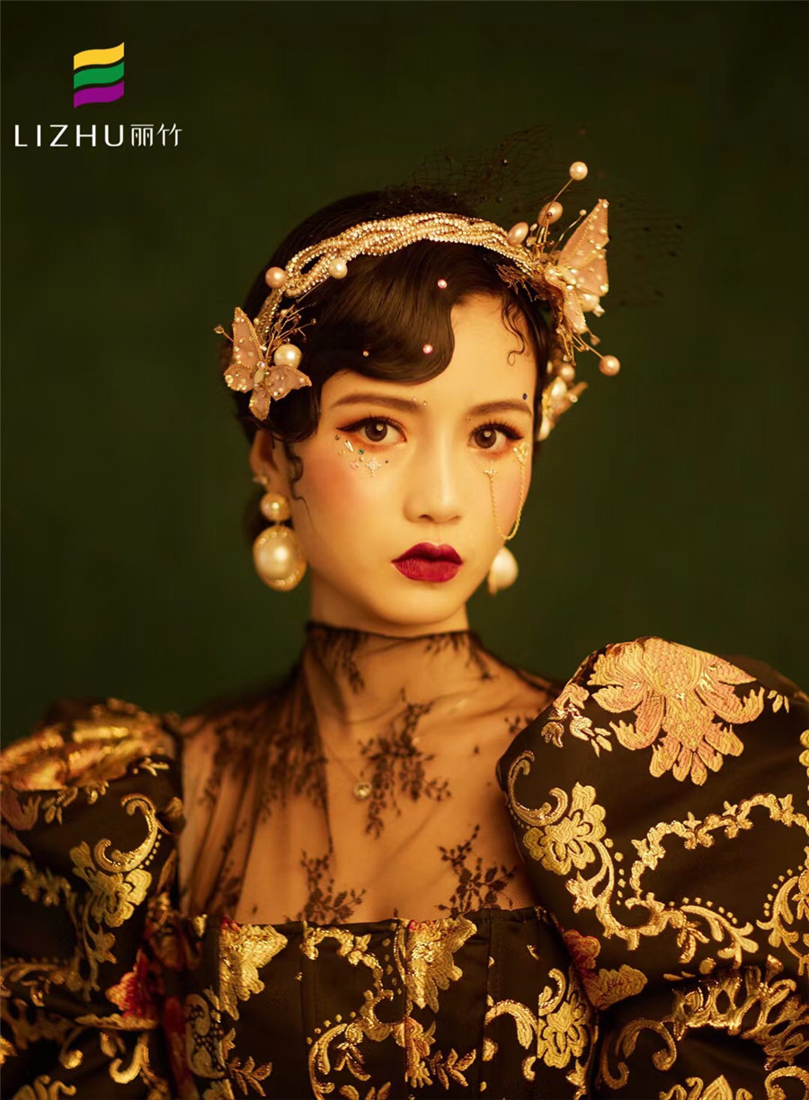 麗竹化妝學(xué)校作品---復(fù)古油畫妝容造型:復(fù)古韻味的手推波,奢華優(yōu)雅的珍珠配飾,畫龍點睛的眼周裝飾,打破沉悶,彰顯優(yōu)雅強調(diào),刻畫出一副復(fù)古名媛的油畫。