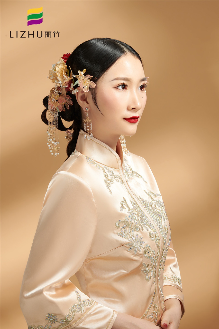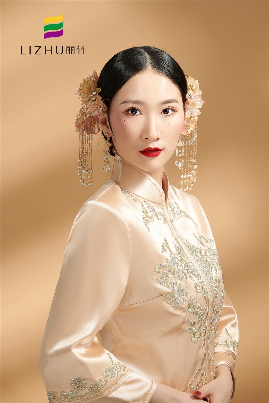 南寧彩妝造型學(xué)校(麗竹彩妝學(xué)校)作品:簡約秀禾新娘造型:香檳色的秀禾服精致簡約,整體造型妝容干凈清新,搭配琉璃珠花的步搖發(fā)簪,減齡端莊大氣,真是太美啦!