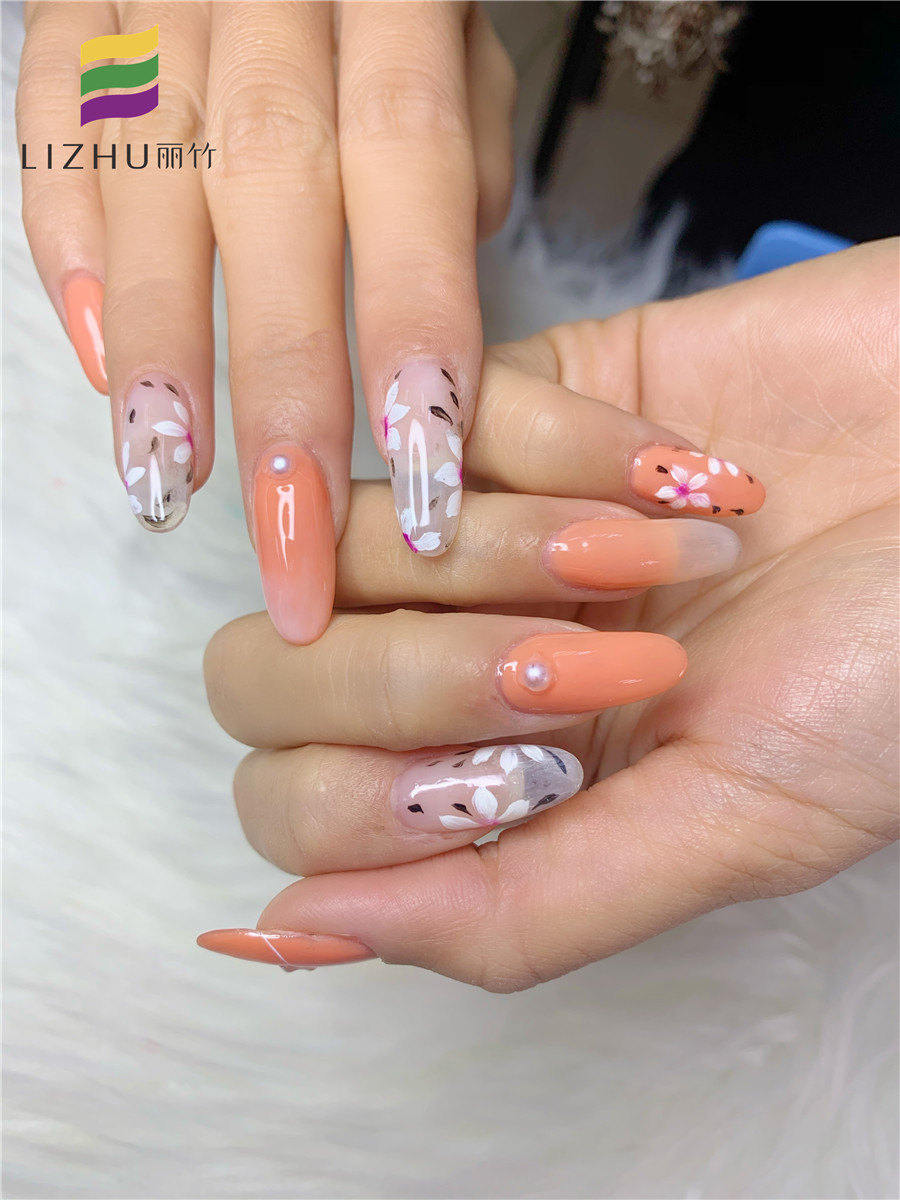南寧哪里可以學彩繪美甲?請看麗竹美甲學校-春日桃花彩繪美甲(三)