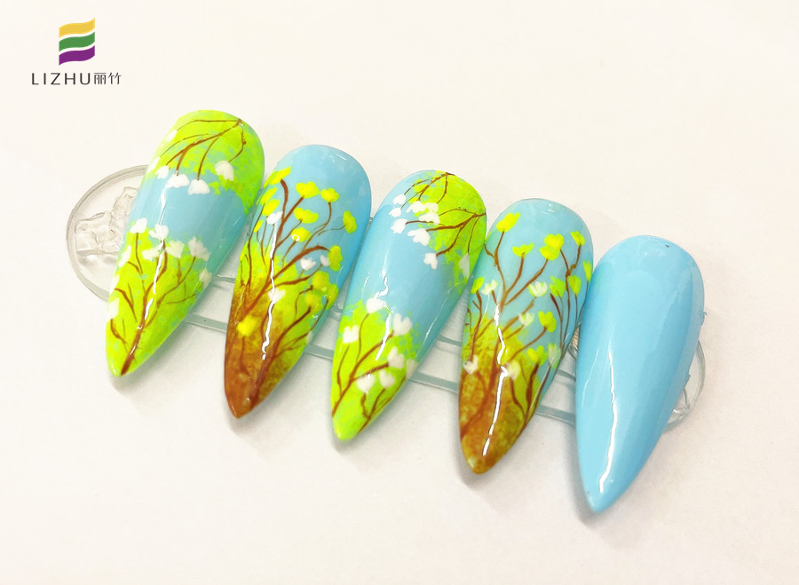 廣西時尚美甲培訓(xùn)、廣西美甲學(xué)習(xí):春日的代表色,怎么能少得了綠色,黃色,和藍色呢?如果讓你將這幾種顏色組合在一起繪制一幅春日美甲作品,你想好怎么創(chuàng)作了嗎?如果還沒有想好,不如就先看看廣西專業(yè)正規(guī)美甲學(xué)校(麗竹美甲學(xué)校)作品吧!
