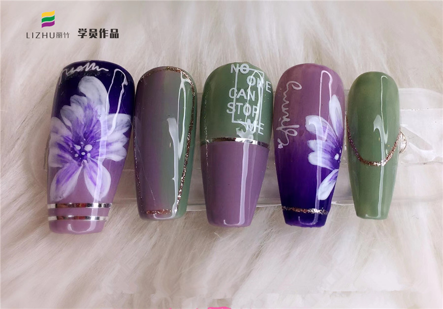 廣西南寧美甲培訓(xùn)、廣西學(xué)美甲彩繪分享:學(xué)員進(jìn)入廣西美甲師培訓(xùn)班(麗竹美甲師培訓(xùn)班)學(xué)習(xí)款式已經(jīng)有將近半個(gè)月的時(shí)間,在這半個(gè)月的時(shí)間里大家都學(xué)習(xí)了很多美甲款式。老師課堂隨機(jī)抽取了兩名同學(xué)的作品進(jìn)行查看,在你看來這樣的美甲作品可以打幾分呢?