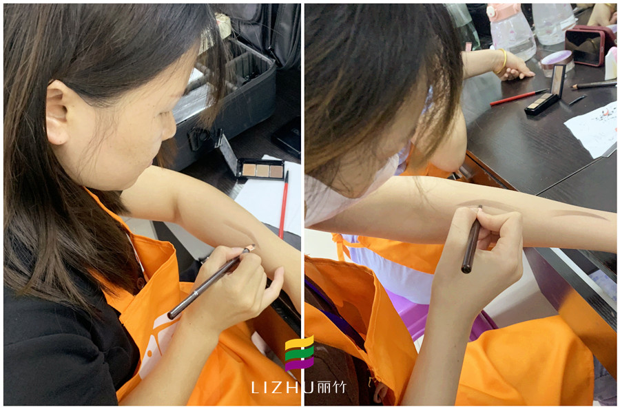 在這個階段的廣西彩妝師培訓(xùn)班的學(xué)員們,在學(xué)習(xí)化妝前都是零基礎(chǔ)的小白,所以如果一開始就馬上進行真人實操,這樣就會取不到好的效果。所以,為了讓學(xué)員們能盡早熟悉皮膚的紋理,狀態(tài),下筆時的手感,眉毛在皮膚上的走向……在進行完紙上畫眉后,手上畫眉就是進行真人實操畫眉的前一步。