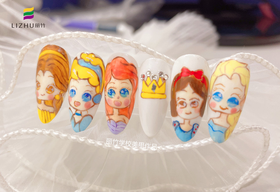 廣西美甲師進(jìn)修班、廣西培訓(xùn)美甲機(jī)構(gòu)分享:卡通不僅是小朋友們的專屬,對(duì)于成年人來說一樣是可以慰藉我們心靈的美好童話。奔波與忙碌的生活與工作中,何不通過一片片小小的甲片,將心中那份對(duì)于童話故事的憧憬繪制出來呢?每個(gè)人都是自己的小公主,小可愛,下面就看看廣西南寧美甲學(xué)校-麗竹美甲學(xué)校為你繪制的可愛卡通美甲作品---迪士尼公主美甲 & 可愛熊雕花美甲。