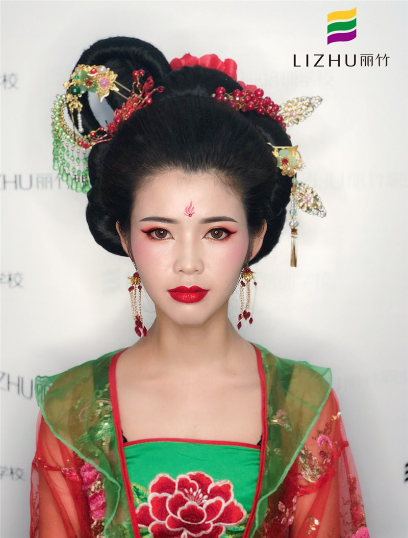 廣西彩妝古裝培訓學校、廣西彩妝造型古裝作品---古風美人造型 :紅裳霞帔步搖冠,鈿瓔累累佩珊珊。綰一縷青絲描一抹紅妝,演繹傳世經(jīng)典大氣之美。如果你想廣西學古風妝容,建議你還是要到廣西專業(yè)美妝造型正規(guī)學校(麗竹學校彩妝專業(yè))去學習,這樣才能追趕時尚風向標,學到全面潮流彩妝技術。