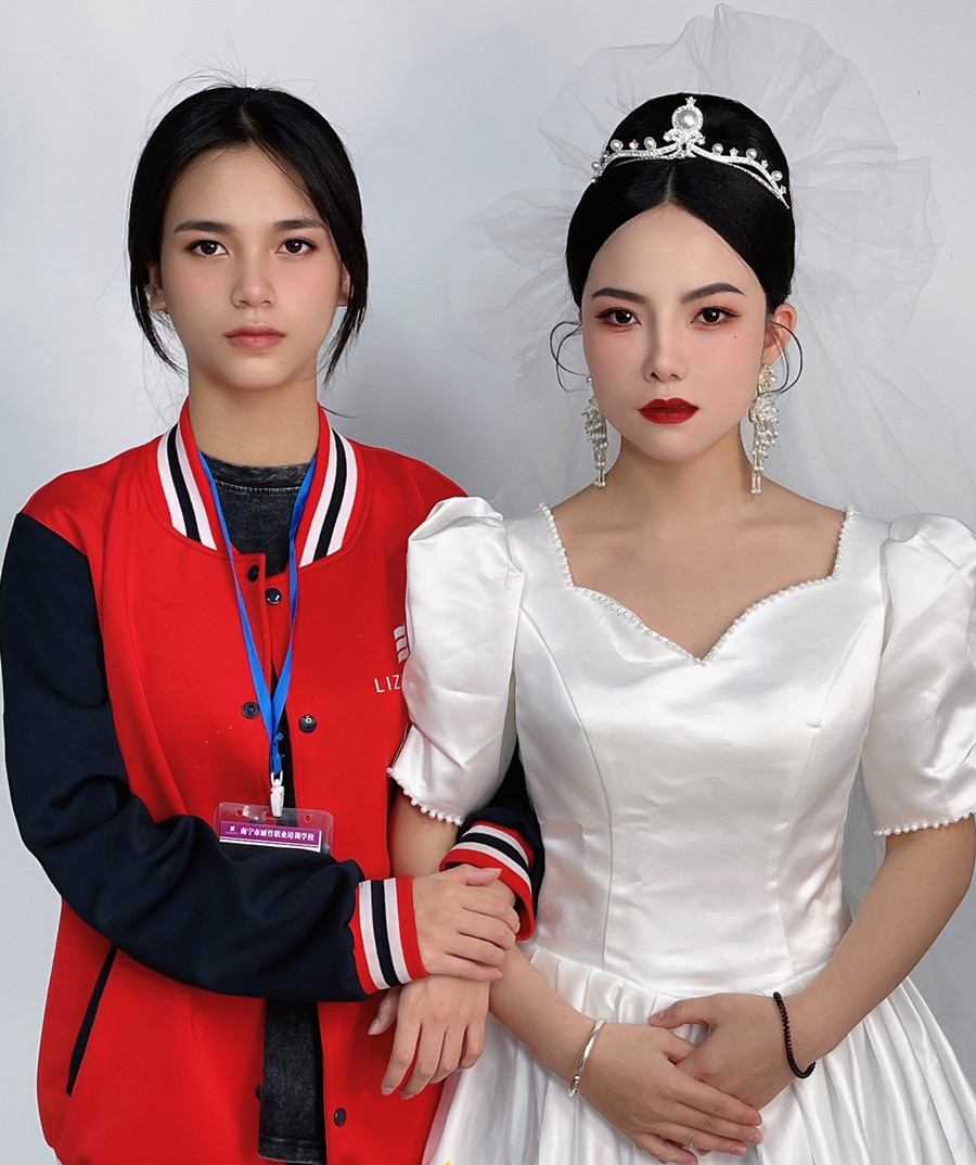 南寧化妝學習、南寧彩妝培訓班:麗竹學?;瘖y專業(yè)迎來畢業(yè)季,一起來看看南寧彩妝造型學校學員寧婉茜的畢業(yè)作品---蓬蓬頭紗新娘造型吧!如果你想零基礎學彩妝造型,或是想知道南寧化妝學校多少學費?現(xiàn)在麗竹學校彩妝專業(yè)正在進行周年慶典報讀活動,緊通過下面的方式聯(lián)系我們了解詳情吧!