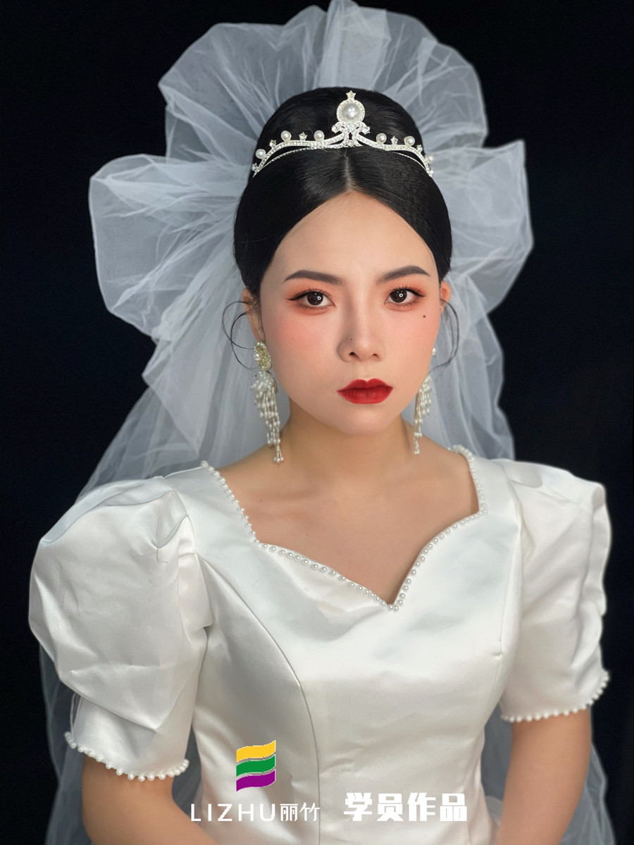 麗竹學校為期2個月的化妝培訓現(xiàn)在已經(jīng)迎來畢業(yè)季,在這段時間里,學員們由零起步開始學習,直到現(xiàn)在已經(jīng)可以獨立完成整個妝容造型的打造。下面,就一起來看看南寧彩妝造型學校學員寧婉茜的畢業(yè)作品---蓬蓬頭紗新娘造型吧!