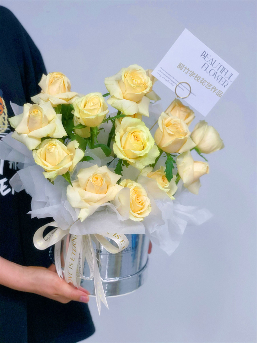 南寧學(xué)習(xí)插花、南寧培訓(xùn)鮮花藝術(shù):南寧花藝零基礎(chǔ)培訓(xùn)班-麗竹花藝學(xué)校的課程已經(jīng)浪漫落幕。學(xué)員們也做出了令自己滿意的花藝作品。下面就和我們一起看看南寧花藝插花職業(yè)學(xué)校學(xué)員們的抱抱桶花束作品吧!如果你對花藝感興趣,想知道南寧哪里可以學(xué)花藝?麗竹學(xué)校常年開設(shè)花藝培訓(xùn)班,作品時(shí)尚充滿創(chuàng)意,