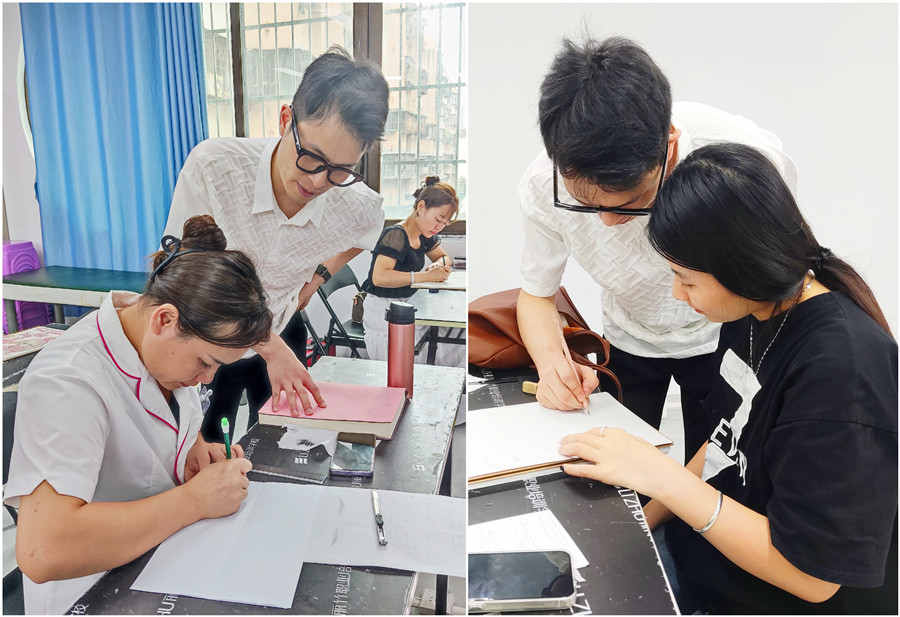 深受學(xué)員們喜愛(ài)的紋繡講師杰文老師繼續(xù)擔(dān)任此次課程的主要講師,在為期7天的課程中,杰文老師不僅會(huì)全面教授學(xué)員們了解紋繡的發(fā)展歷程以及市場(chǎng)前景,還會(huì)手把手對(duì)學(xué)員們?cè)谑址ú僮髦械谋∪醐h(huán)節(jié)進(jìn)行一對(duì)一輔導(dǎo),直到學(xué)員們能熟練掌握。