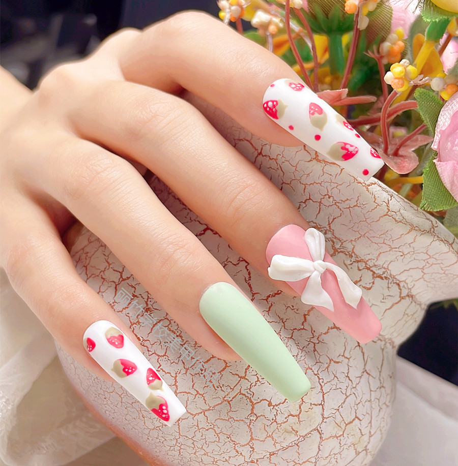 南寧美甲培訓(xùn)哪里比較好?麗竹美甲培訓(xùn)用作品證明:草莓美甲(一)
