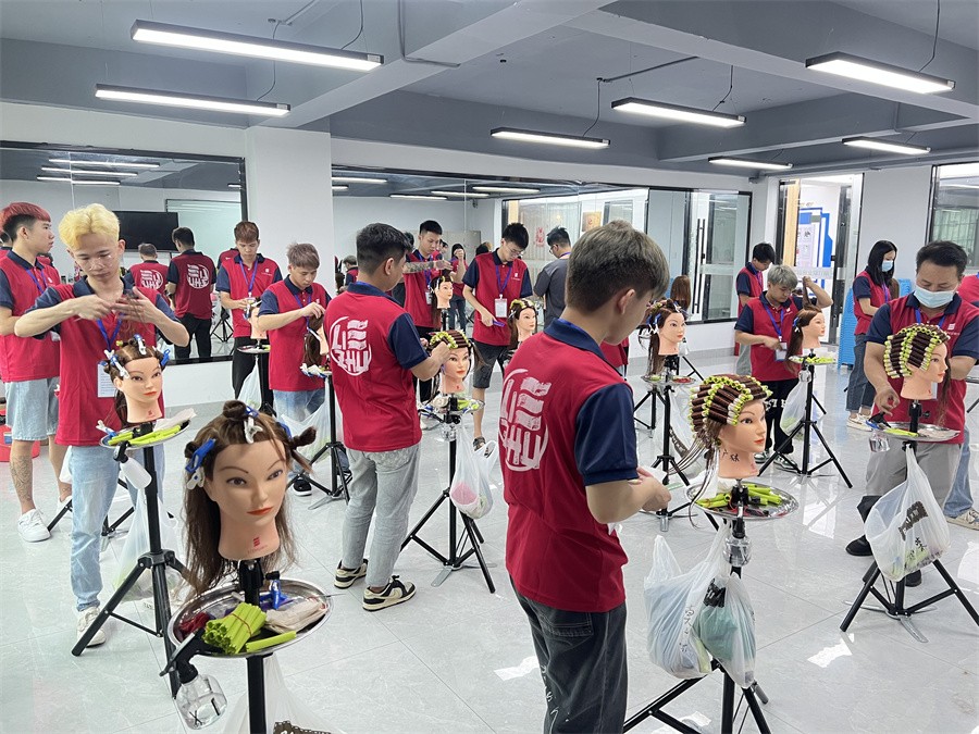 南寧學(xué)美發(fā)造型,美發(fā)燙染技術(shù)班學(xué)員練習(xí)上杠