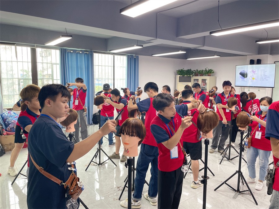 南寧美發(fā)基礎(chǔ)培訓(xùn),美發(fā)基礎(chǔ)班學(xué)員練習(xí)剪發(fā)站姿,修剪動作