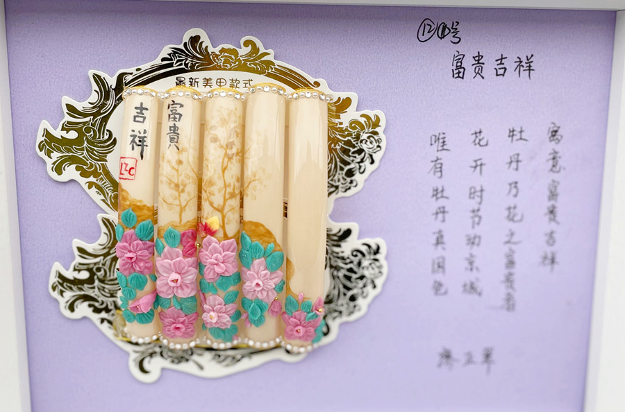 南寧美甲造型學(xué)校學(xué)員雕花作品《花開富貴》