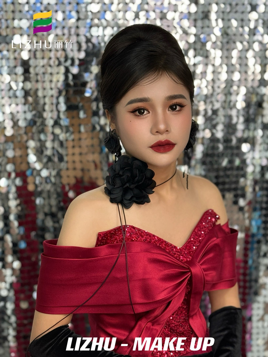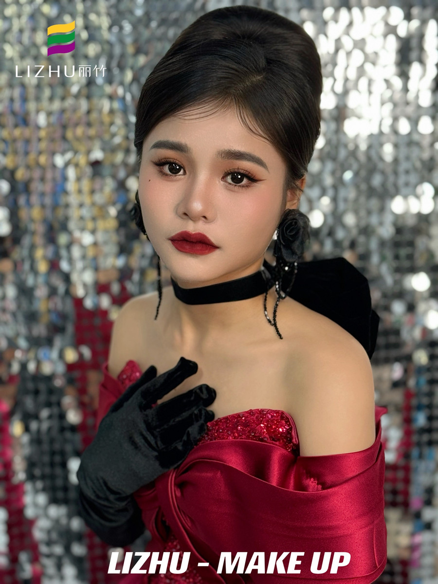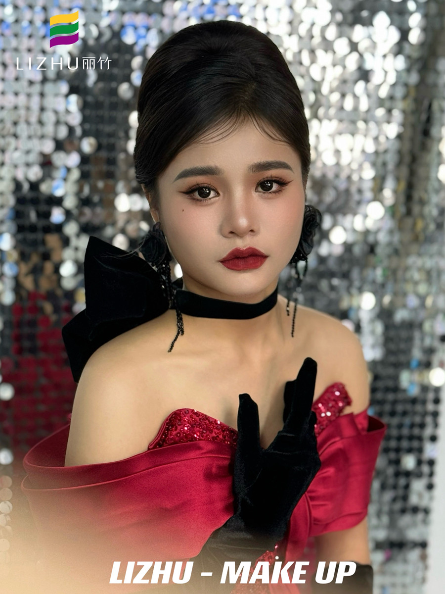 南寧化妝美業(yè)學(xué)習(xí)、南寧化妝彩妝(麗竹化妝彩妝培訓(xùn))作品---復(fù)古年會造型:明媚動人氣質(zhì)妝容,簡約大氣復(fù)古赫本發(fā)型,佩戴夸張黑色花朵配飾,身穿酒紅色亮片抹胸禮服,仿佛置身于年會中的紅玫瑰。想知道南寧化妝學(xué)校哪家時(shí)尚?或是想知道南寧學(xué)化妝學(xué)費(fèi)便宜的是哪家?歡迎大家趁著麗竹學(xué)校正在進(jìn)行招生優(yōu)惠活動之際,關(guān)注麗竹學(xué)校彩妝專業(yè),...