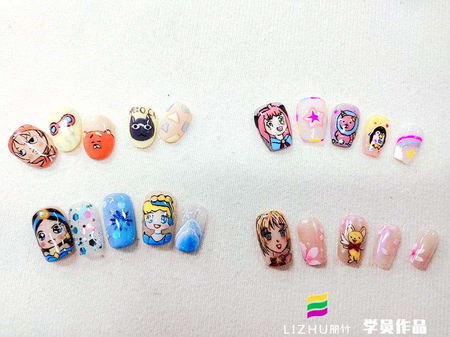 廣西美甲培訓(xùn)(麗竹美甲培訓(xùn))學(xué)員作品---卡通漫畫美甲