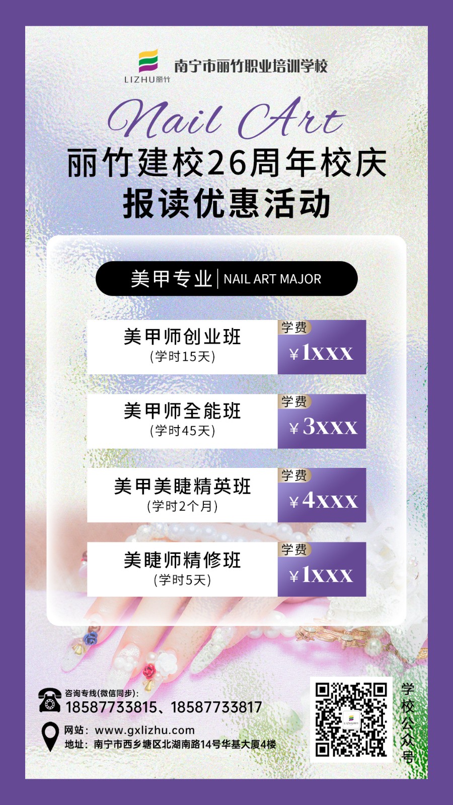 因此,如果你想在短時間內(nèi)學習一門專業(yè)技術,那不妨考慮下美甲吧!更何況廣西老牌美業(yè)技術學校(麗竹學校)現(xiàn)在正在進行招生優(yōu)惠活動,機不可失。