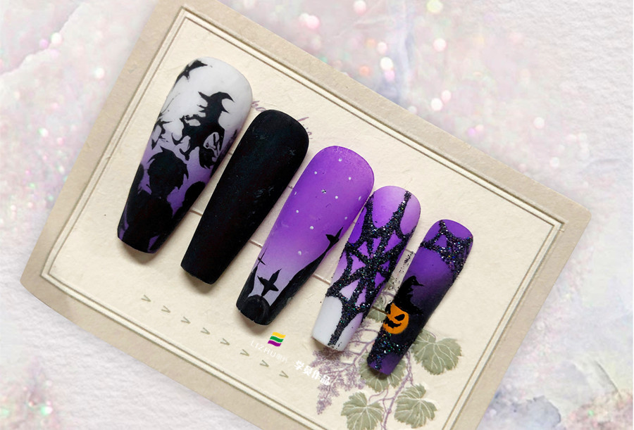 廣西學(xué)美甲款式(麗竹美甲造型班)作品---彩繪磨砂美甲
