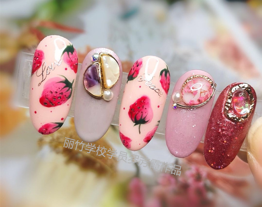 水彩草莓美甲,廣西美甲學(xué)校推薦