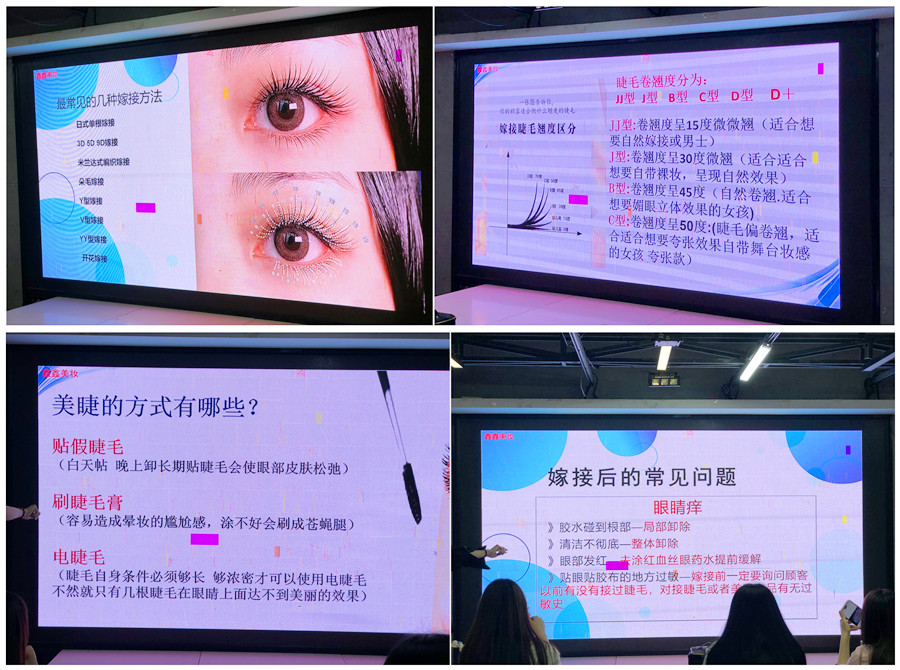 雖然此次是南寧美睫進修課程,但是朱斌老師并沒有因此就忽略了美睫基礎(chǔ)理論知識的學(xué)習(xí)。課程剛開始,老師就通過課件圖片的方式,快速挑選一些日常美睫操作中需要注意的事項,為同學(xué)們進行講解,以及在現(xiàn)場為同學(xué)們提出的問題進行解答。