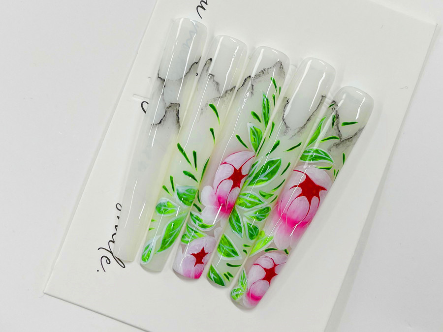廣西美甲造型培訓(xùn)學(xué)員彩繪美甲作品---《上春山》