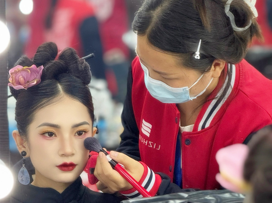 廣西化妝培訓(xùn)推薦、廣西化妝學(xué)校排名:都說老祖宗留下的,都是無可復(fù)制的美。這話用在化妝技術(shù)上同樣也適用。婉約柔美的中式風(fēng)格,加上現(xiàn)代化的妝容的錦上添花,趕緊和我們一起來看看廣西化妝職業(yè)培訓(xùn)學(xué)校(麗竹化妝學(xué)校)同學(xué)的課堂化妝作品---新中式造型吧!