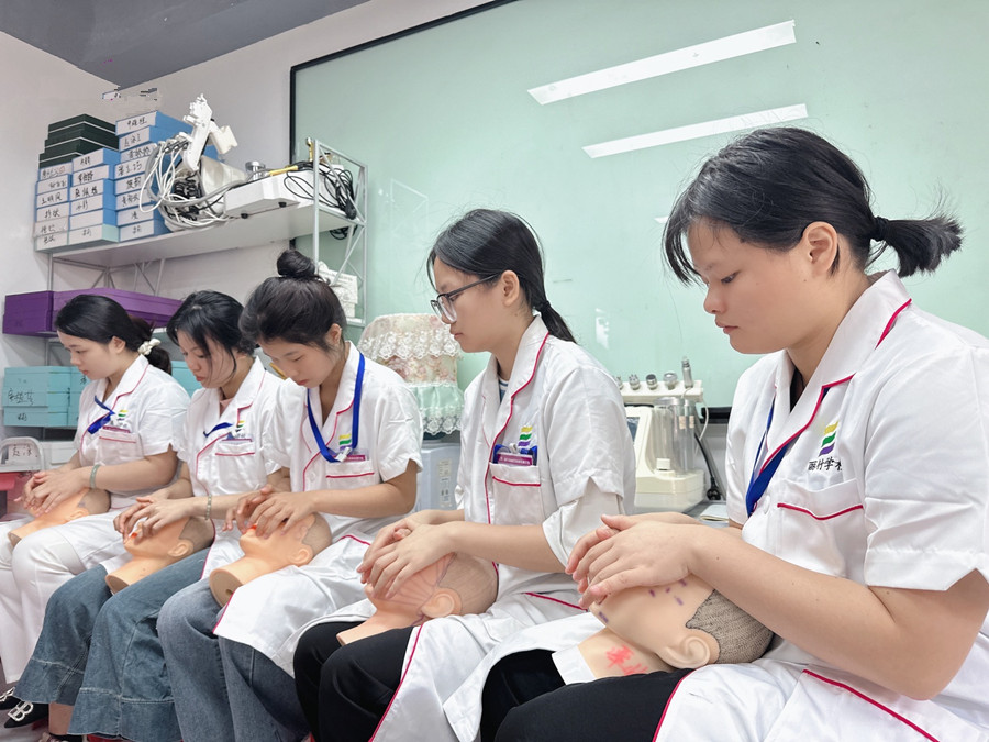 從零開始學(xué)美容、南寧美容基礎(chǔ):很多沒有系統(tǒng)接觸過美容專業(yè)培訓(xùn)的人在學(xué)習(xí)之前,有個(gè)疑慮就是人的面部上分類了那么多個(gè)重要的xue位,怕自己記不住,也怕學(xué)不會?如果你現(xiàn)在還有這個(gè)顧慮,恰巧南寧美容專業(yè)正規(guī)學(xué)校(麗竹美容專業(yè)正規(guī)學(xué)校)剛剛進(jìn)班的同學(xué)正在進(jìn)行美容第 一 課的學(xué)習(xí),一起去看看吧!