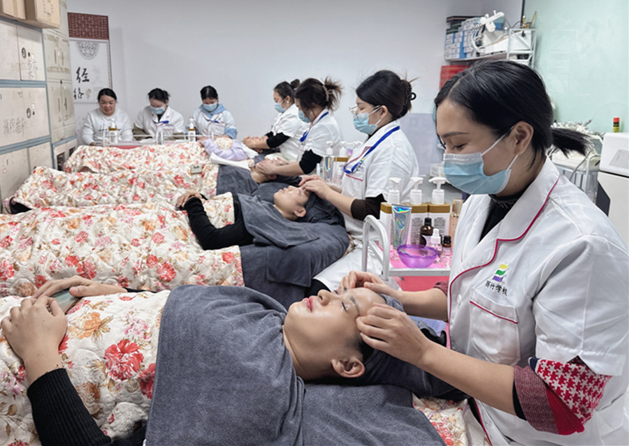 面部護理包含洗臉,按摩,撥筋,刮(sha)痧,敷膜,艾灸的項目,通過假頭模練習(xí),再到真人實操,兩者需要相互結(jié)合才能更好的發(fā)揮作用。