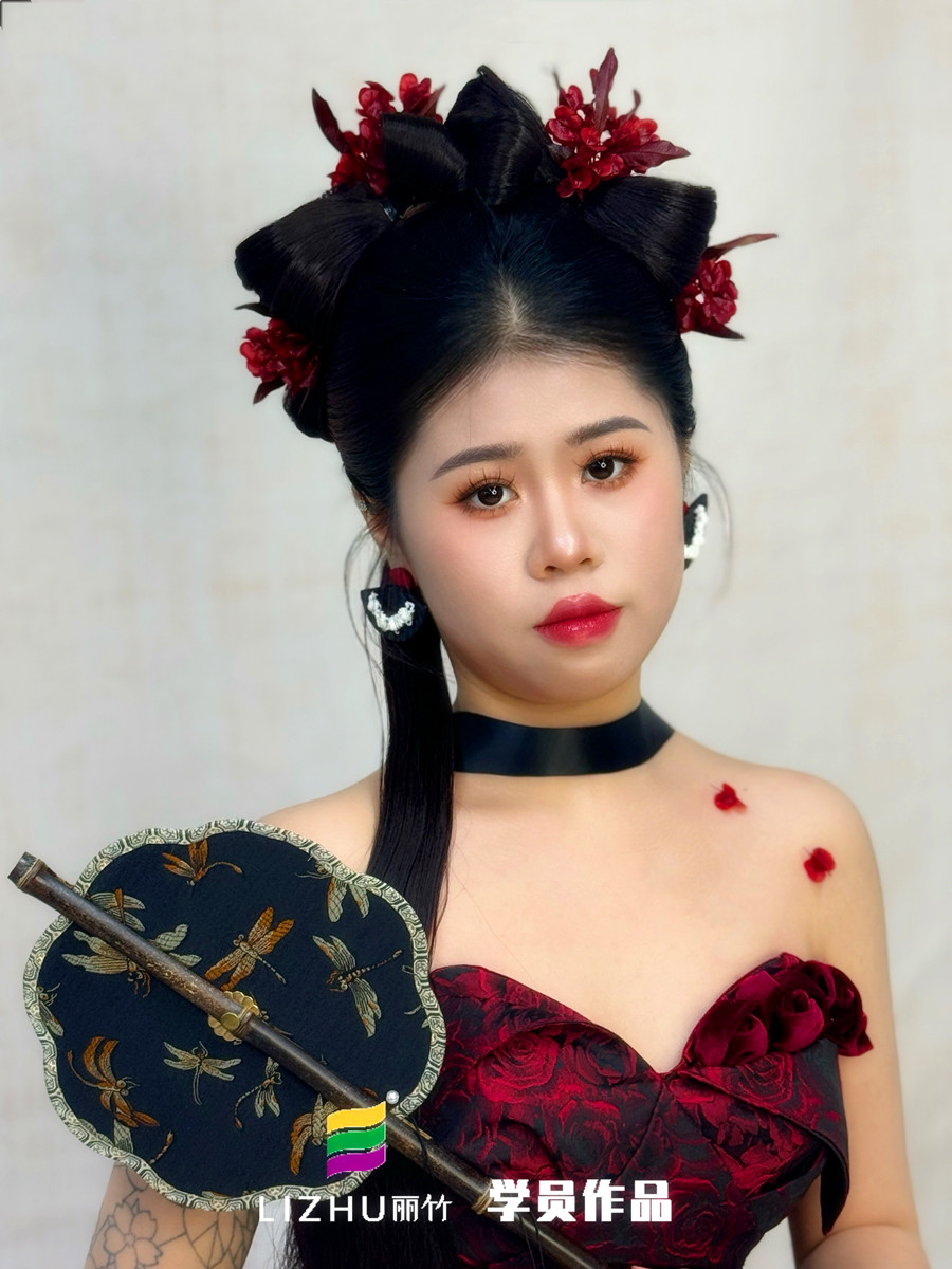 南寧化妝高彩、南寧高彩化妝學校(麗竹高彩化妝學校)學員作品---新中式造型。之前如果曾因為學費,課時等原因一直在猶豫不決?南寧高彩化妝學校推薦你可以趁著麗竹高彩化妝學校正在進行學費特惠活動,趕緊到校了解詳情,參觀和試聽。