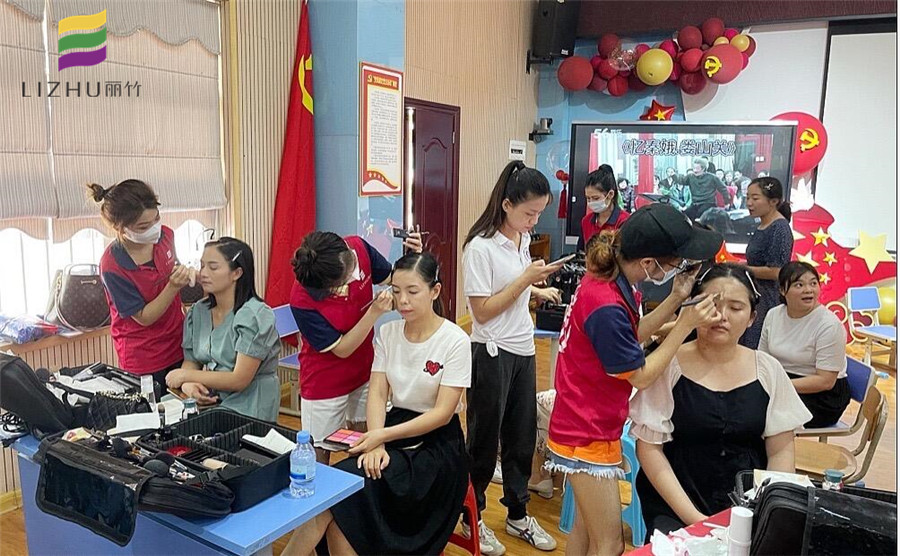 6月29日,麗竹學(xué)校組織化妝班學(xué)員為首府南寧紀(jì)檢監(jiān)察系統(tǒng)慶祝中國共產(chǎn)黨成立100周年合唱比賽提供妝造服務(wù)。