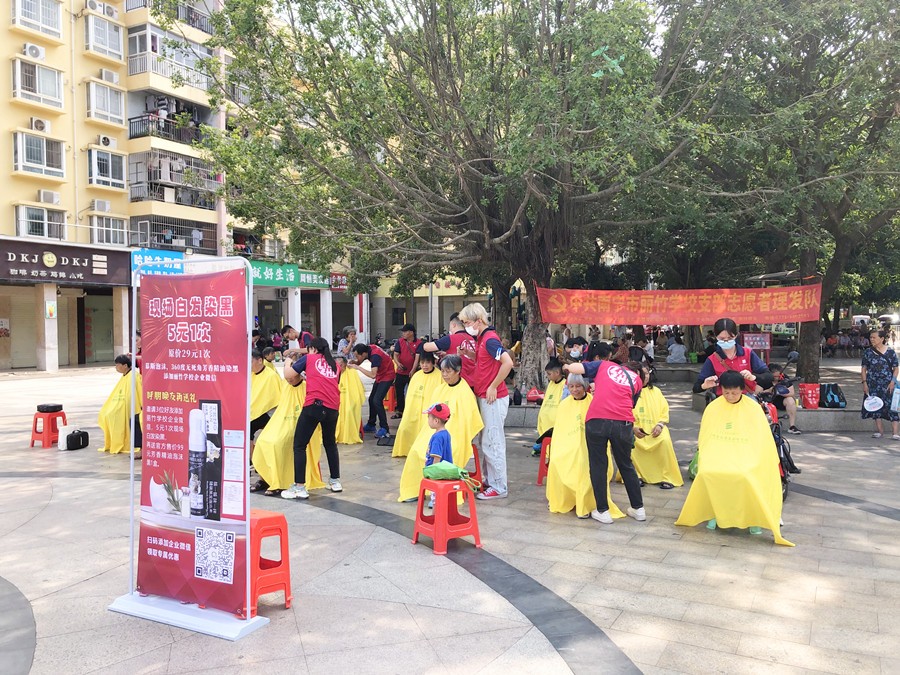 南寧美發(fā)學(xué)校公益進(jìn)社區(qū)、南寧美發(fā)社會實踐培訓(xùn):中共南寧市麗竹學(xué)校支部志愿者理發(fā)隊(南寧美發(fā)志愿者服務(wù)隊-南寧美發(fā)培訓(xùn)班)為了真正將惠民服務(wù)落實到群眾身邊,現(xiàn)在只要到活動現(xiàn)場,不僅可以免費理發(fā),還可以體驗“白染黑”項目哦