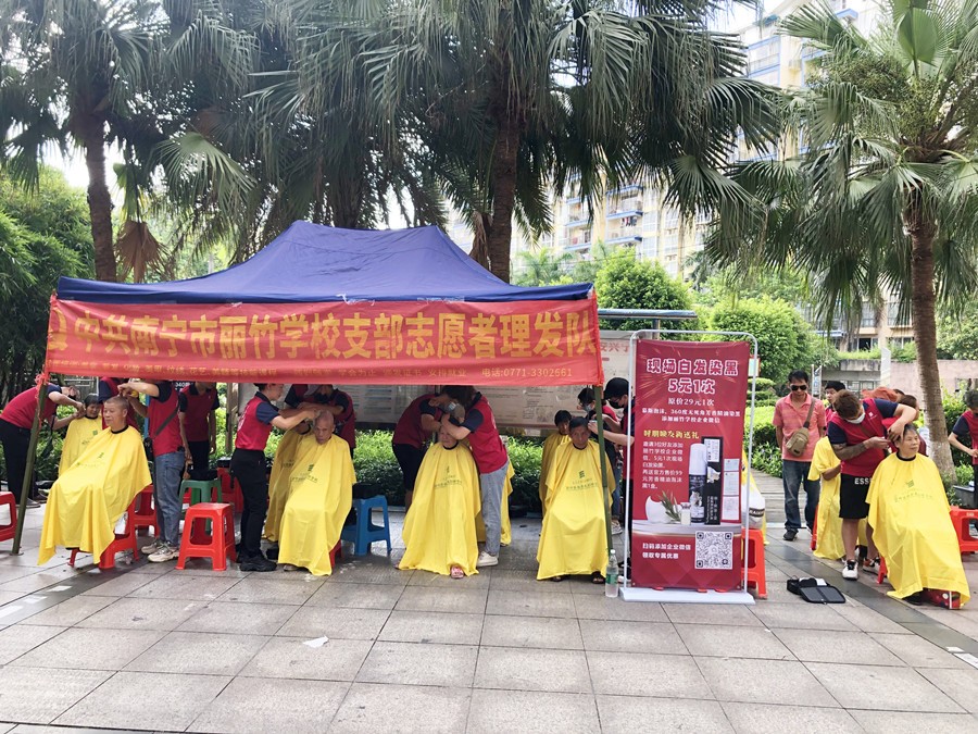 2023年7月23日,南寧美發(fā)志愿者服務(wù)隊為澳華社區(qū)居民義務(wù)美發(fā)