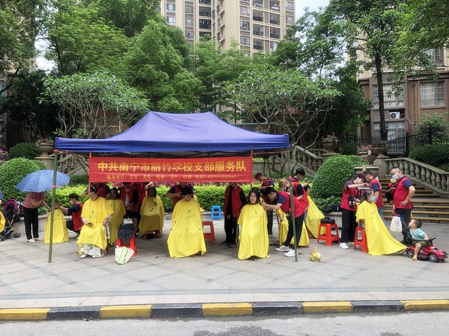 2024年4月19日,廣西美發(fā)志愿者服務(wù)隊(duì)為普羅旺斯小區(qū)進(jìn)行免費(fèi)理發(fā)
