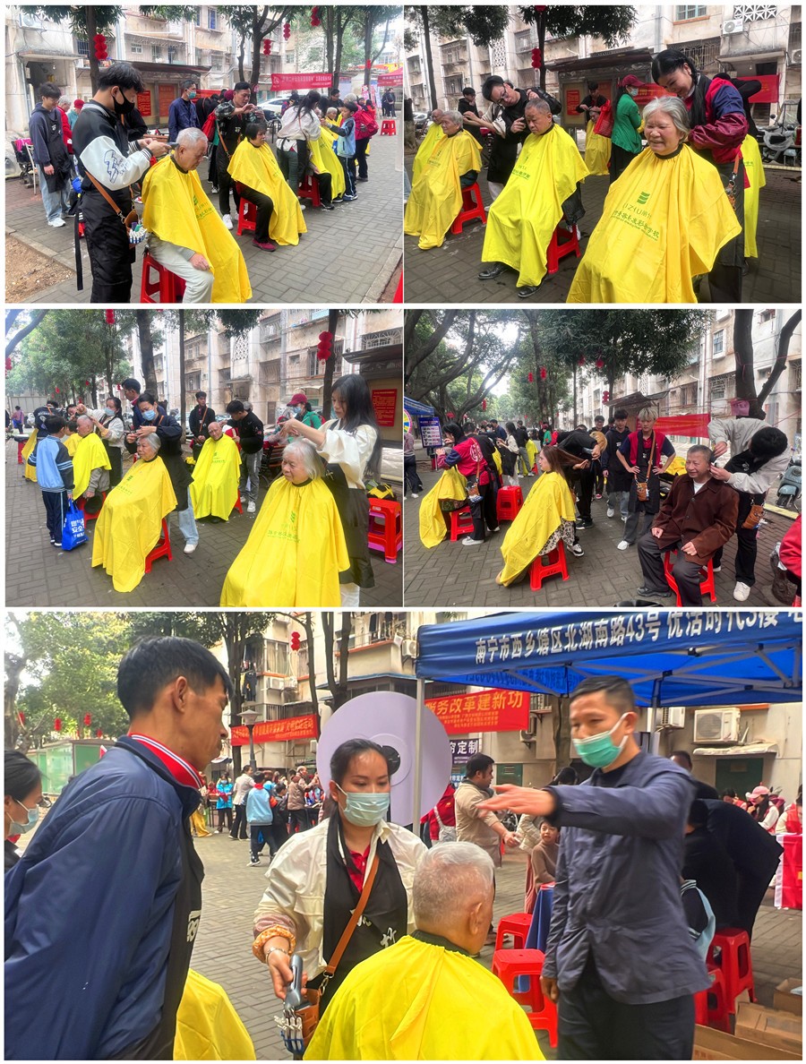 廣西專業(yè)美發(fā)學(xué)員來到南寧市地委大院,為群總免費(fèi)理發(fā)