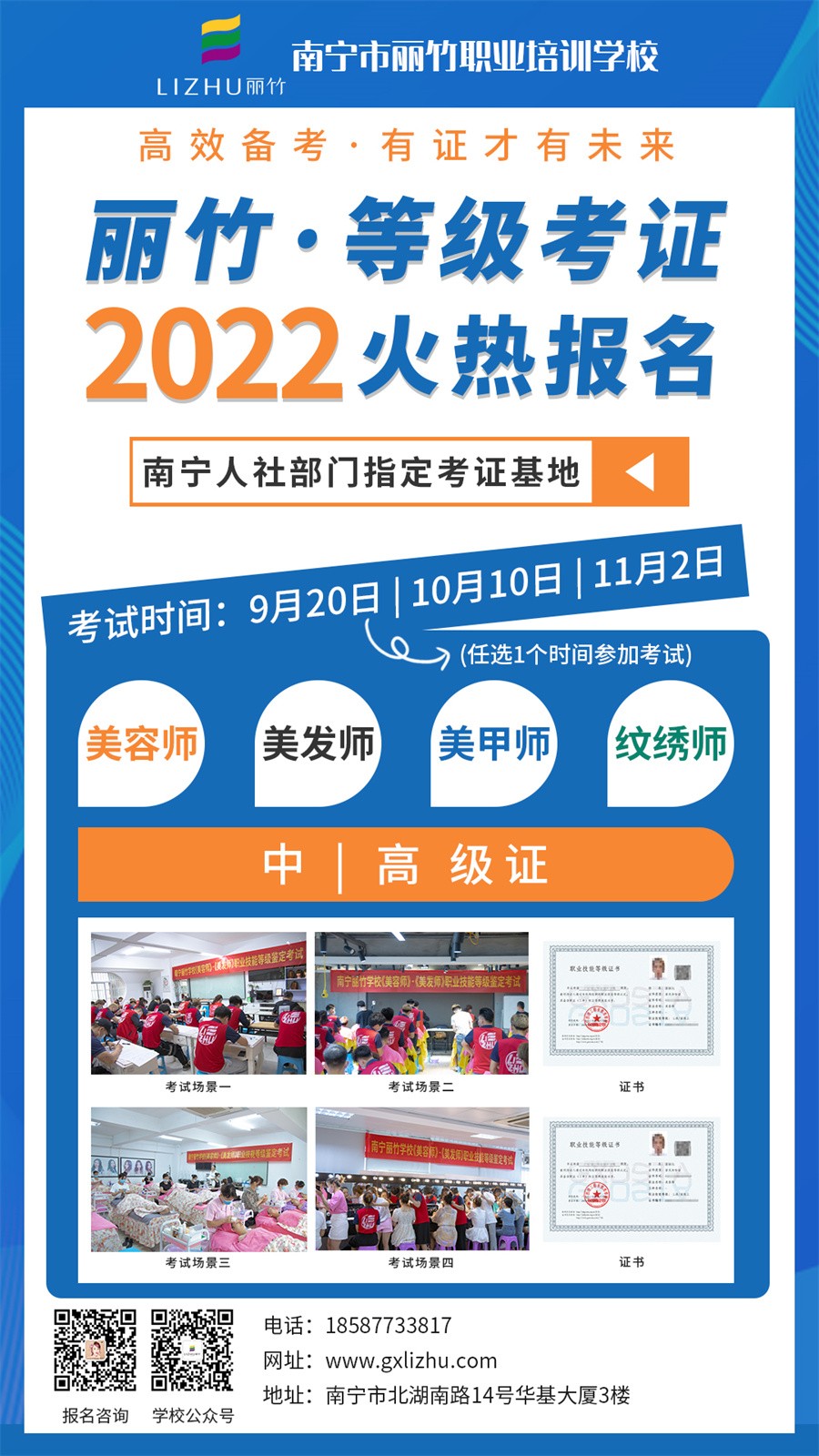 無論你是想考美發(fā)師職業(yè)資格證書,還是想知道美容師資格證怎么考?或南寧哪里可以美甲師證?亦或是想知道紋繡師證書怎么考?麗竹學(xué)??甲C班專業(yè)培訓(xùn),保證通過率。